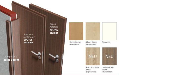 HPL beschichtet Beschichtung steht für Qualität. Es wird als Hochdruck-Schichtpressstoffplatte / High Pressure Laminate (HPL) bzw. Kompaktwerkstoff hergestellt. Außerdem besteht eine Unterscheidung zwischen HPL (Objektbereich) und CPL (Privatbereich). Differenzierungsmerkmale sind Schichtdicke, Aufbau und Herstellungsverfahren. Und die Auswahl ist groß. Denn es gibt noch unzählige Beschichtungsmöglichkeiten. Damit können Sie sich Ihre Wunschtür ganz individuell zusammenstellen.