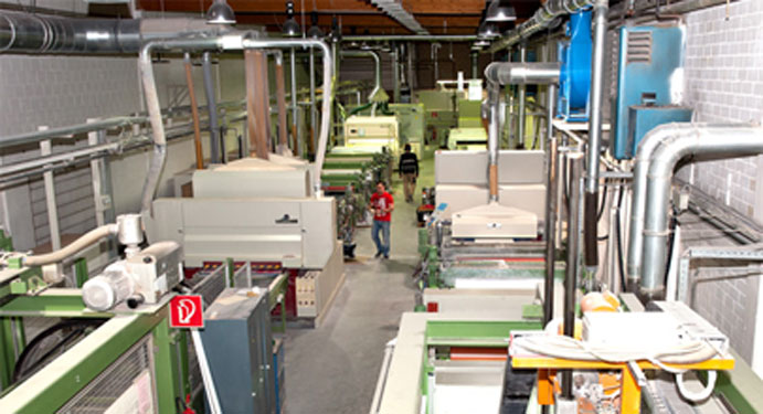 Die modernen Produktions- und Fertigungsstraßen auf dem 22.000 m² großen Betriebsgelände ermöglichen einen ständigen Lagervorrat von nahezu 10.000 Norm-Türelementen.